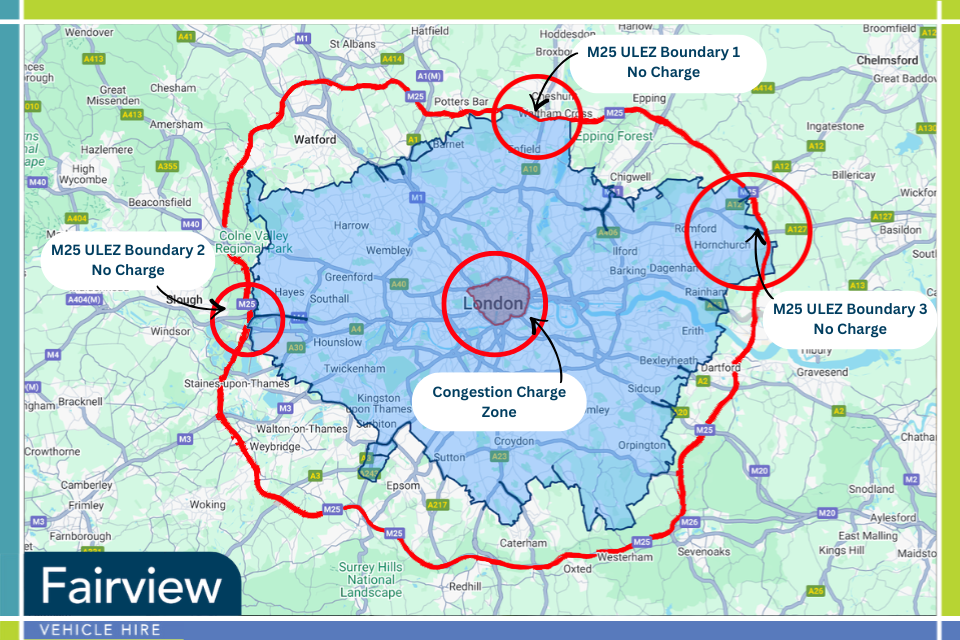 London’s Ultra-Low Emission Zone applies to all 33 of the London boroughs, which make up Greater London. The only area within the zone where ULEZ charges do not apply is the M25 motorway, which wraps around and slightly intersects it. Why? The motorway acts as an outer boundary of the ULEZ. It is not considered a road within it.
